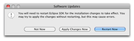 - You will then be asked if you would like to restart Eclipse. Click Restart Now.